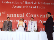 Honorable Chief Minister of West Bengal Mr. Buddhadeb Battacharya releasing the research work of Indo American group in 43rd National conference of FHRAI - Vision of Indian Tourism is ready reckoner guide for budding entrepreneurs in hospitality.